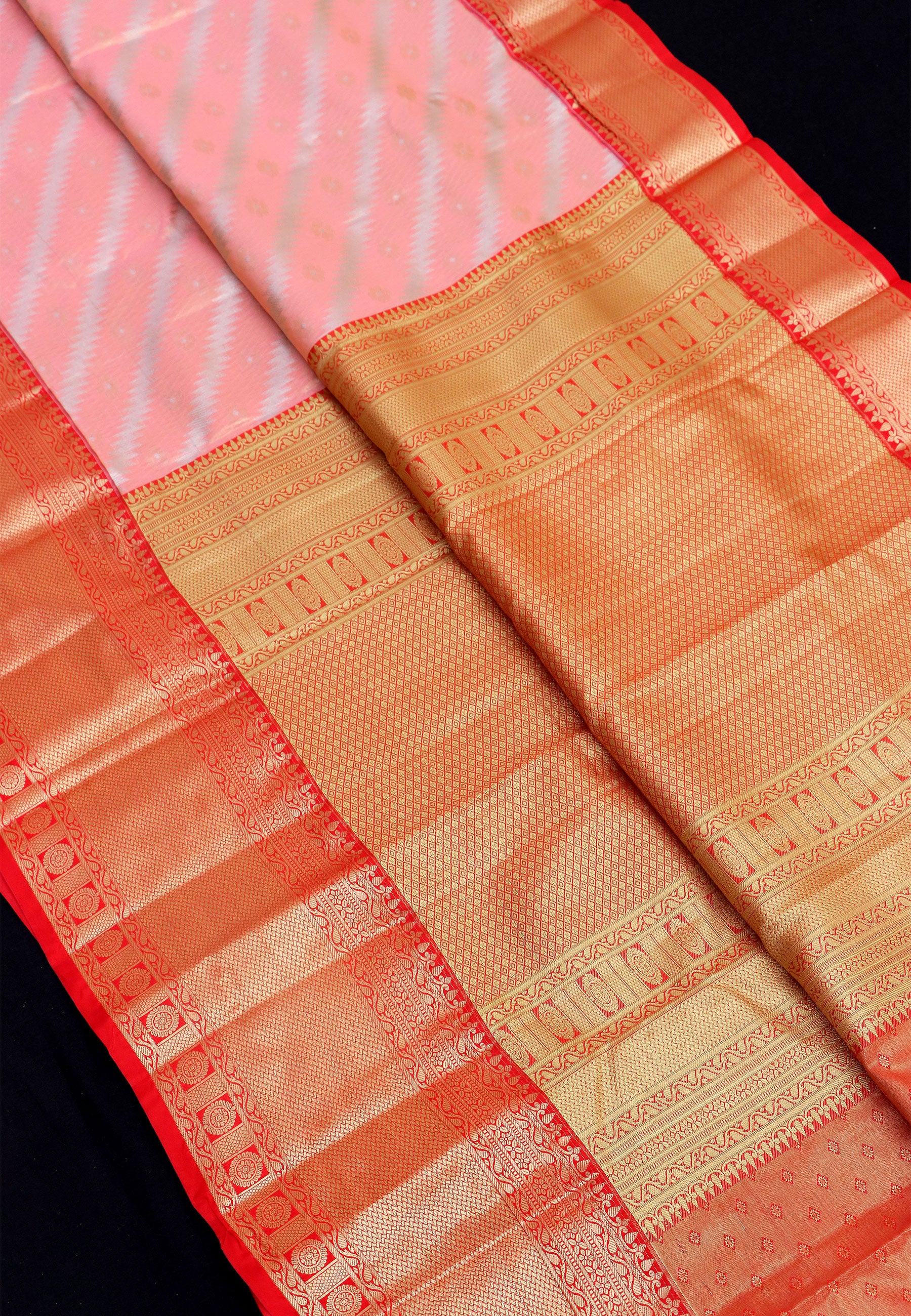 Handlooms Bridal Saree with Stripes and with Temple Border-(SA-481)