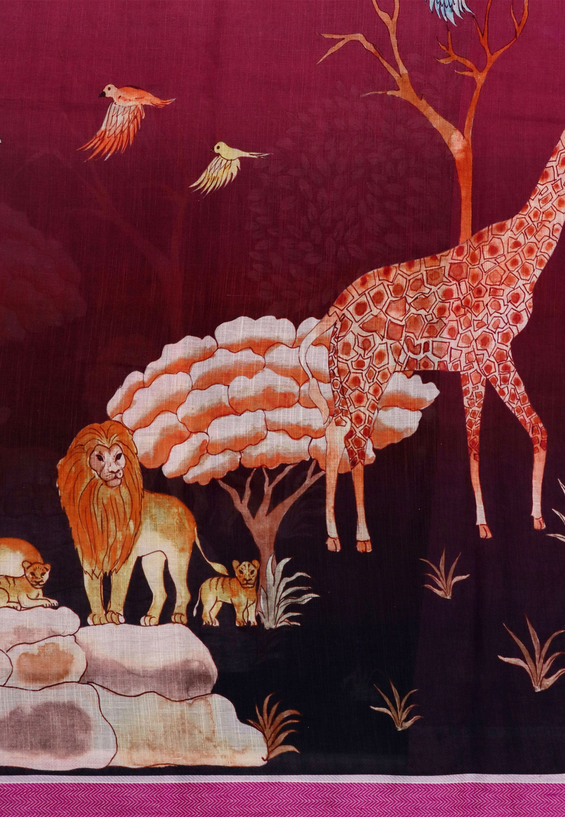Digital Print Saree with Brown Colour and Border With Pink Shade-(SA-602)