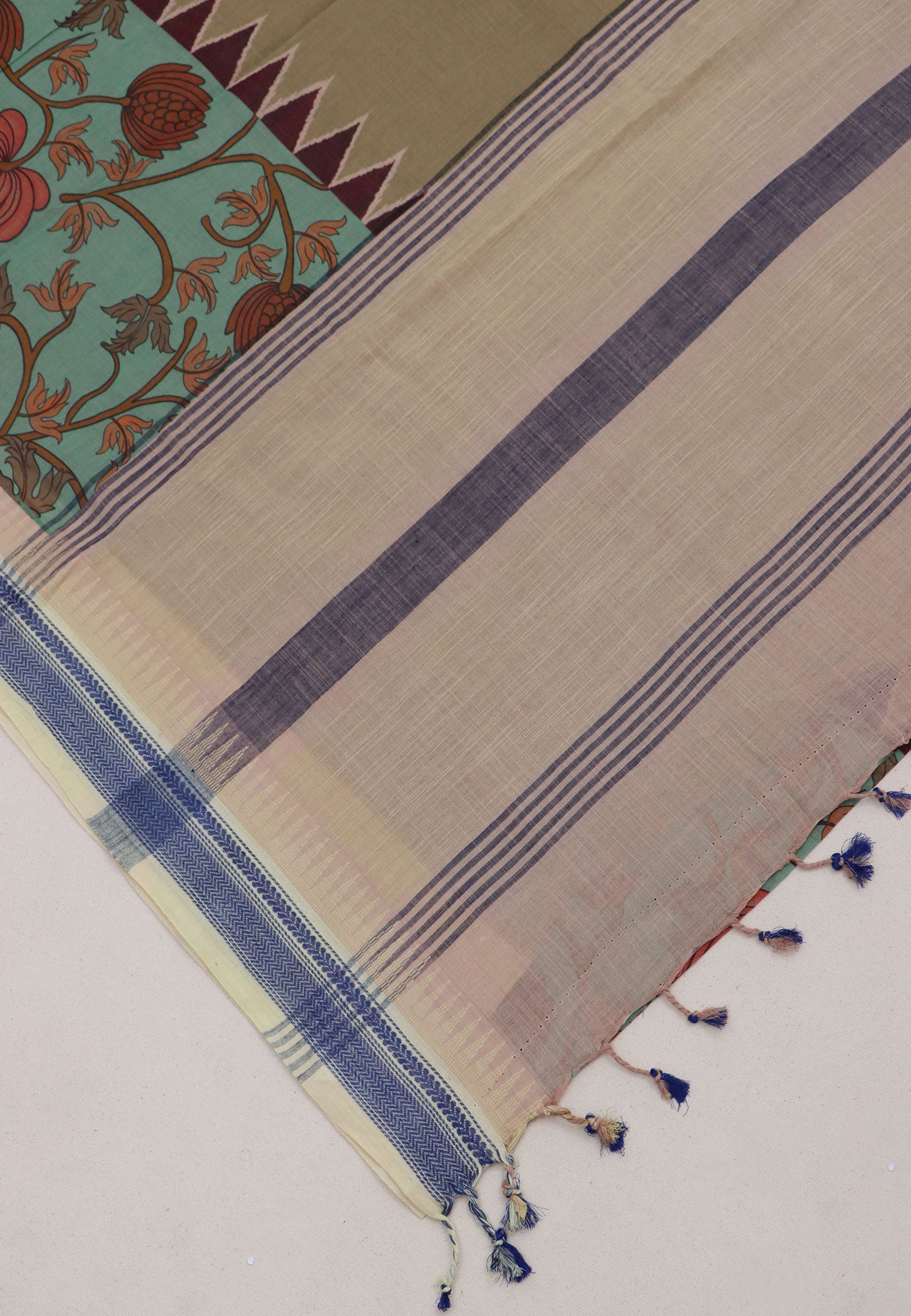 PALLU: Stripe pattern with simple contrast of Green colour.