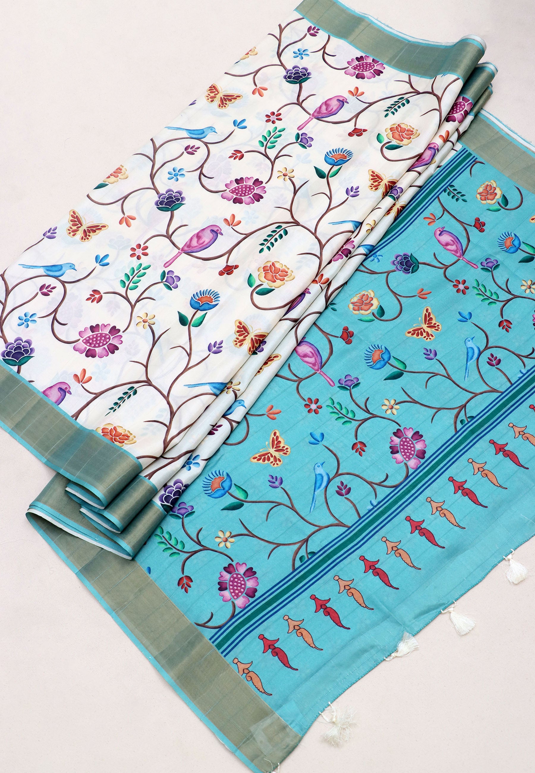 Home > > Magic Mudra Saree with White Colour and Border With Blue Shade-(SA-621)